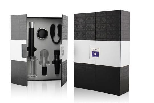 Nowoczesny zestaw do wina w eleganckim opakowaniu.